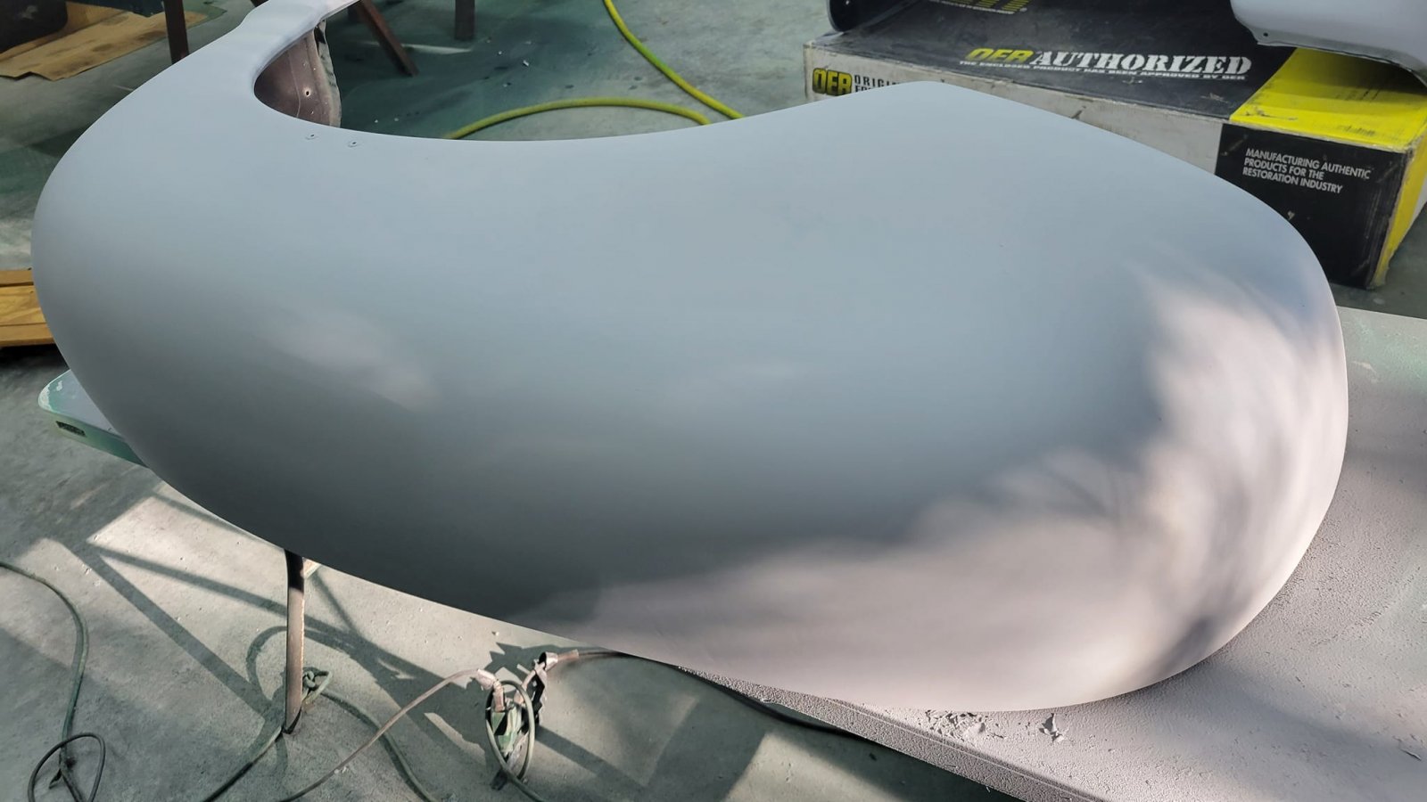 Lord. Well, they aren't perfect. Little bit of trash, and I have another small run, but it's down low enough it's not super visible. But not bad for the conditions and experience. Good enough I'm not gonna mess with em anymore. I have to remind myself that "perfect is the enemy of good enough" and this looks really good for the old farm truck. Lol. I went to Harbour Freight and nabbed me a couple of cheap fender stands Now- I gotta get my daughter's off topic plastic fantastic outta the way so I can back Sam in and at least get the back of his cab painted so I can remount the bed before cold weather hits. .