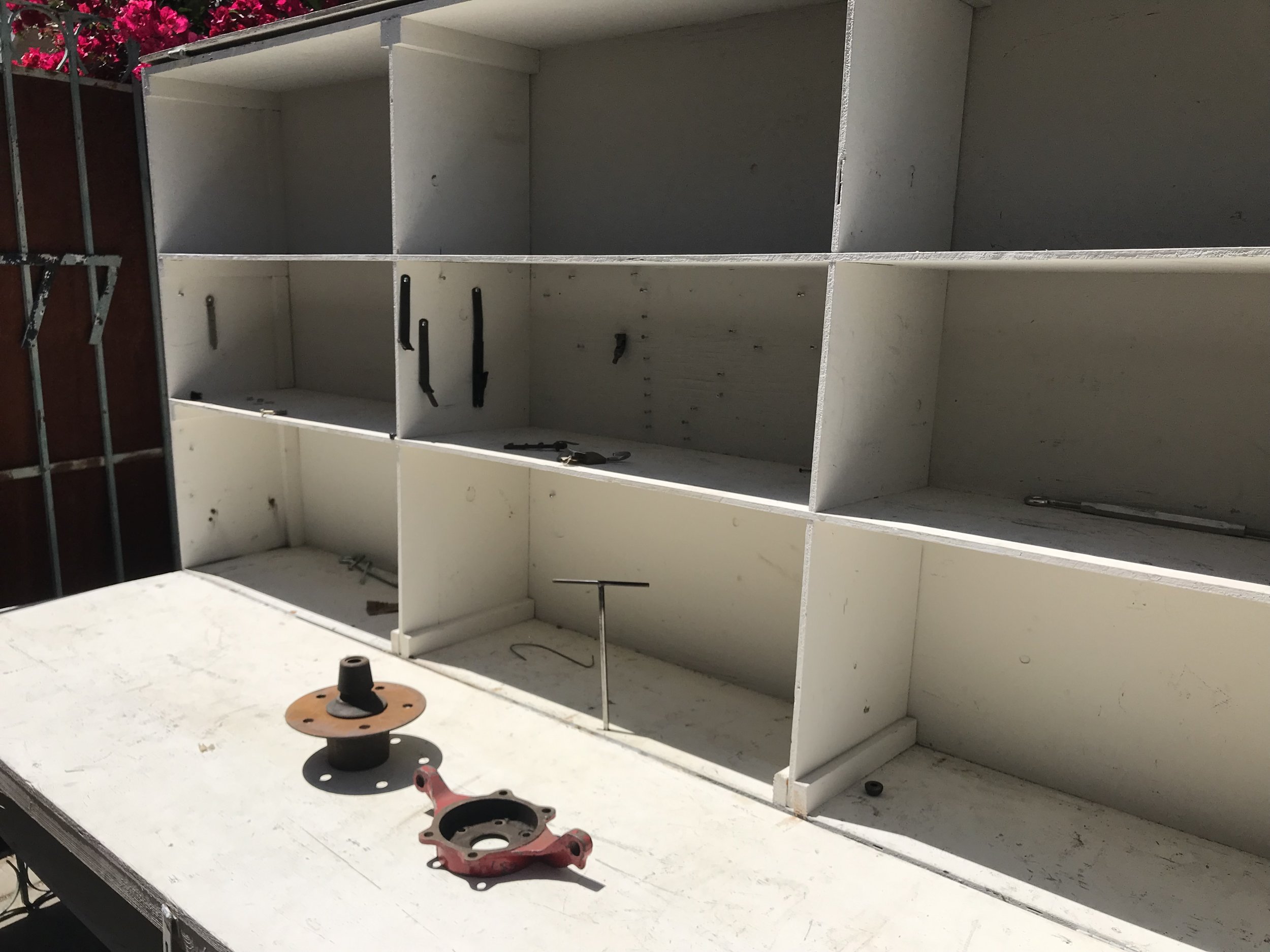 Here’s the portable work station that Tom built for Bonneville. All the necessary engine tools were stored in there. I have most of his tools and his Bonneville pit tool box as well as his Lathe, 1940s delta machinery and drill press. A lot of Jack Engle custom blower camshafts and handmade radius lifters. Loads of aircraft hardware, his entire AN fitting collection. Tom handmade everything. He had money and could buy anything at anytime but he chose to build a better mousetrap.