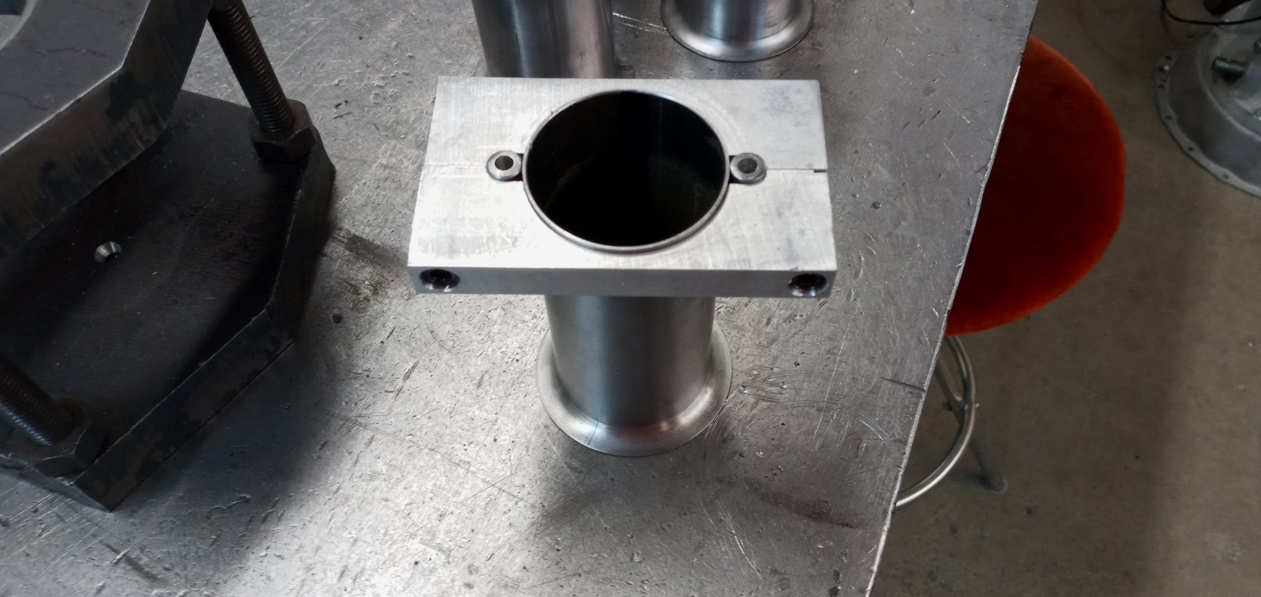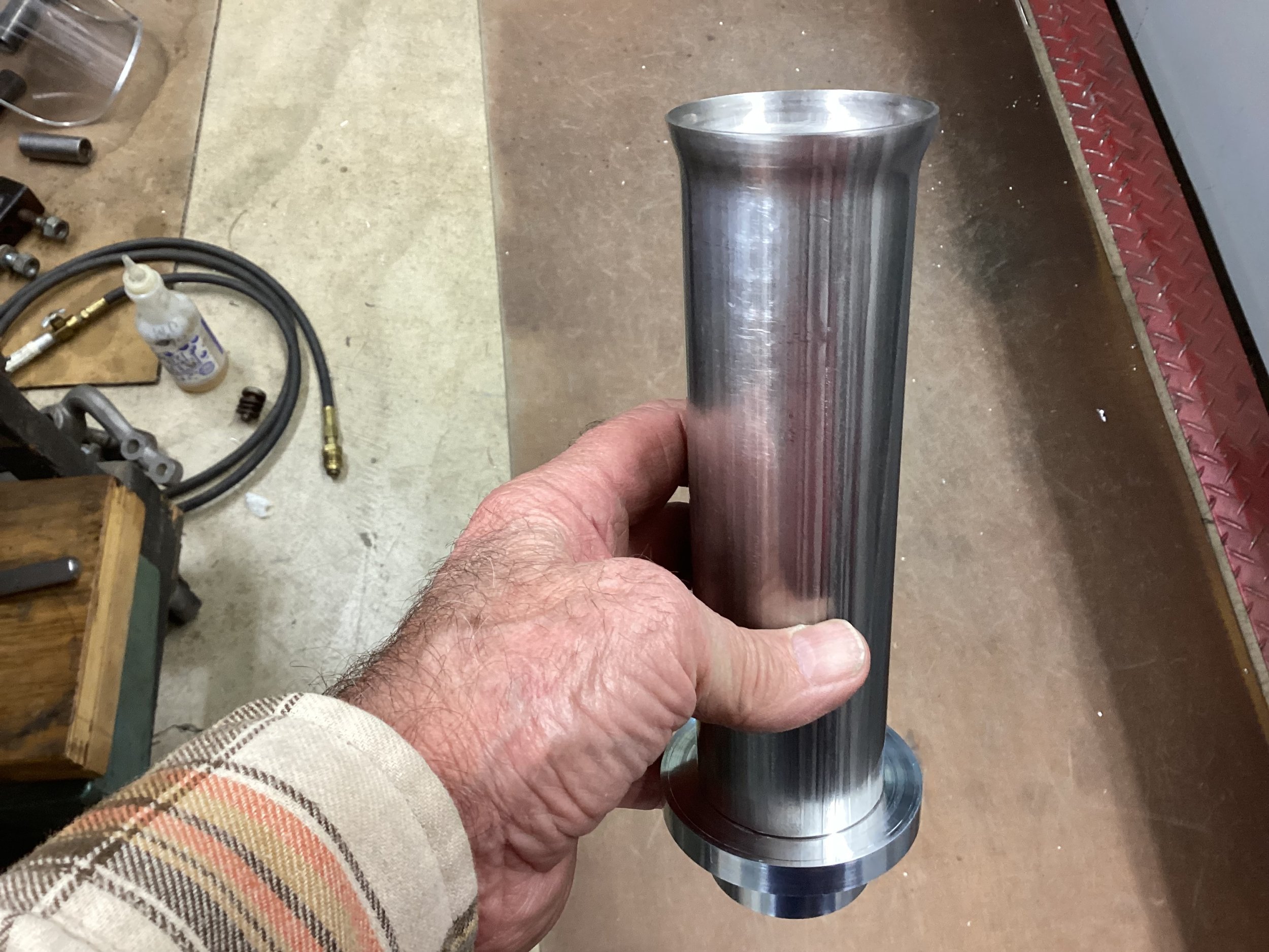 I have been toying with the idea of shortening the 10" stacks on the Hilborn. So instead, I ordered a 6' piece of 2-1/8"- .049 wall stainless from Burns Stainless. After machining some tooling to support and keep the tube round during the flaring process, I am making some 6-1/2" long ones. It works well to first push one end over a 2-5/16 hitch ball, then install the support collar, and use the top of an Argon bottle to finish the flare. Next I will be making a fixture to hold the pieces while tack welding the mounting bosses on the bottom, of the tubes. IMG_1697.jpg IMG_1560.jpg IMG_1639.jpg IMG_1641.jpg IMG_1643.jpg IMG_1685.jpg IMG_1687.jpg IMG_1688.jpg IMG_1690.jpg IMG_1691.jpg IMG_1696.jpg