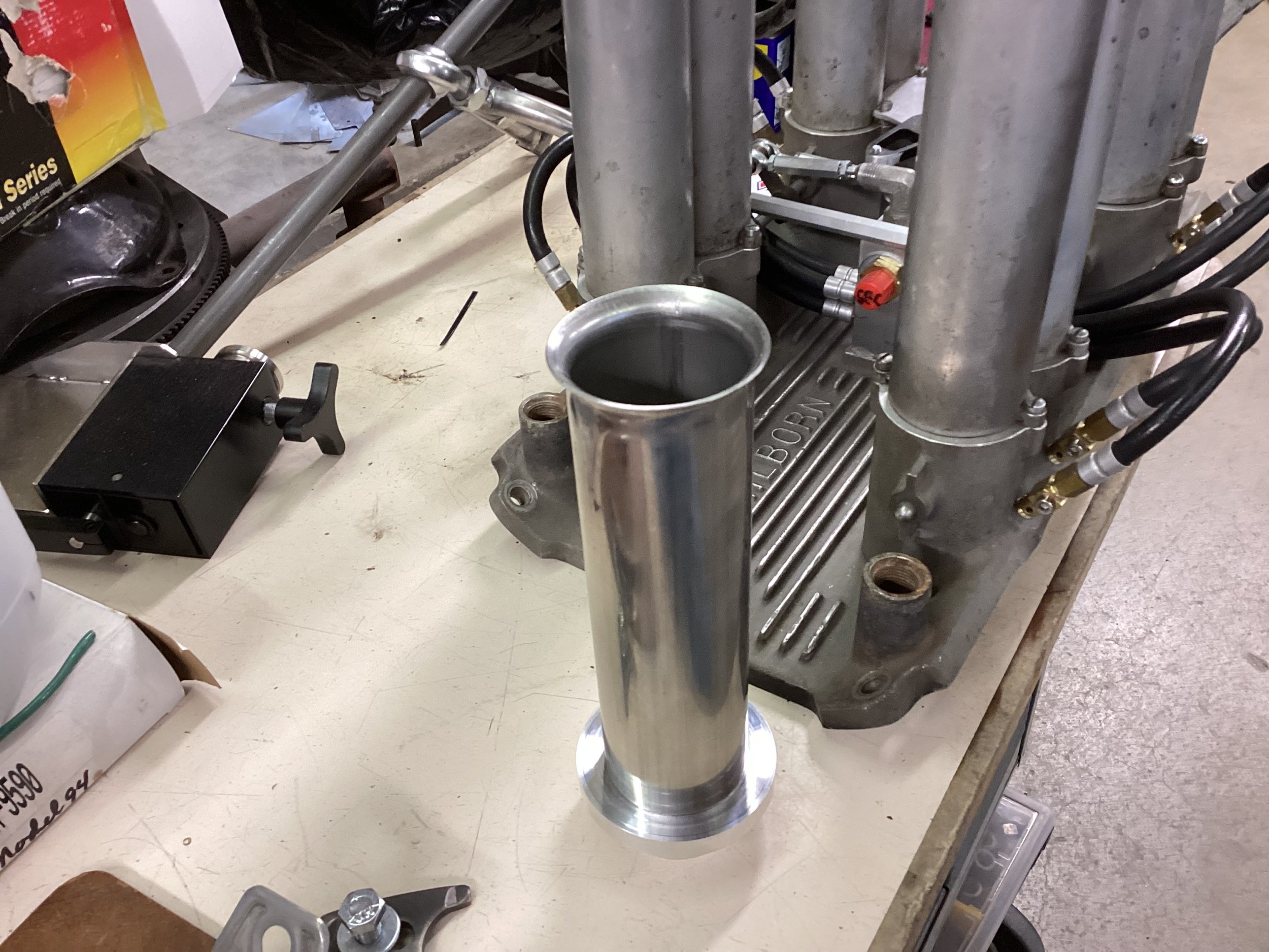 Mine are a little bit different from original Hilborn style, but they will work. You two are both craftsmen, and yours look like what came with my set from the factory. And I agree with you Marty, there’s a market for them. I used exhaust tubing, and with the wall thickness it has, the tubes are just fractionally larger on the inside diameter than 2-1/16. Probably around 0.02 give or take a couple of thousandths. Once I see how you two attach the screw bosses, I’ll reconsider doing it that way. Currently mine have a flange and doubler plates, which are pretty good, just not as original.