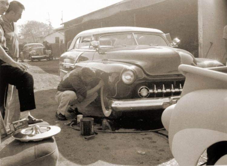 Dream Truck @ Barris shop for sure, detailing Mandy Holder's Merc, and what looks to me to be Tom Hocker's 40 coupe in the background.