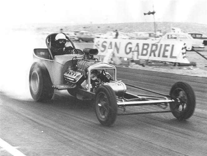 An early photo of Gary Cagle in his fuel Modified Roadster. Later it was painted yellow and Gary’s long time sponsor was Newhouse Automotive.