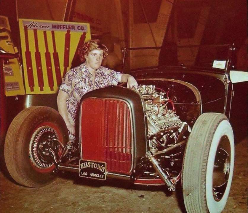 No, that’s Marcia Campbell with her roadster pickup, she was a ‘50’s hot rodder and also photographed many cars.