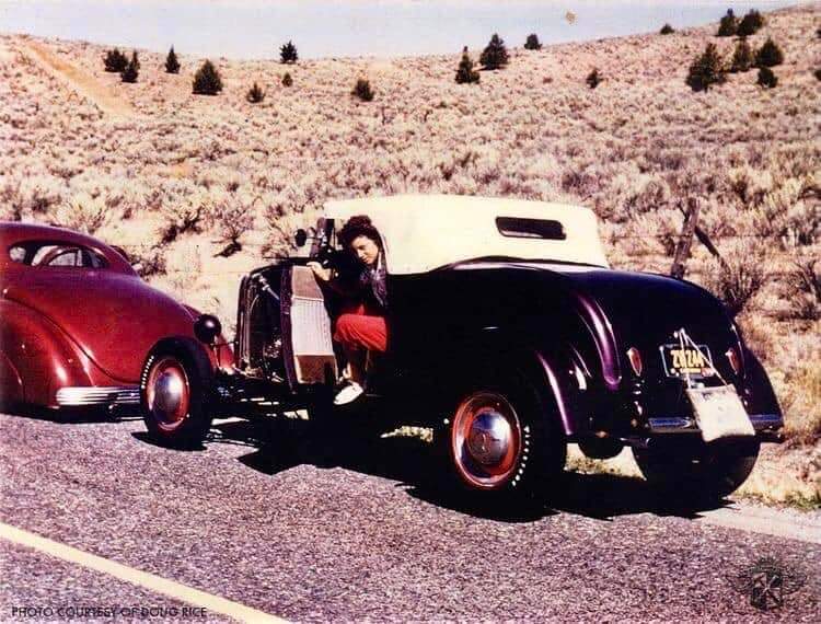 19. What we’ve got here is the ‘32 roadster that Doug Rice used to tow his Bonneville prepped ‘40 Ford coupe home after the coupe developed engine trouble. The driver of the roadster is Mrs.Rice ( his wife that is)
