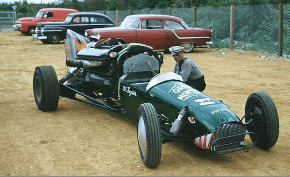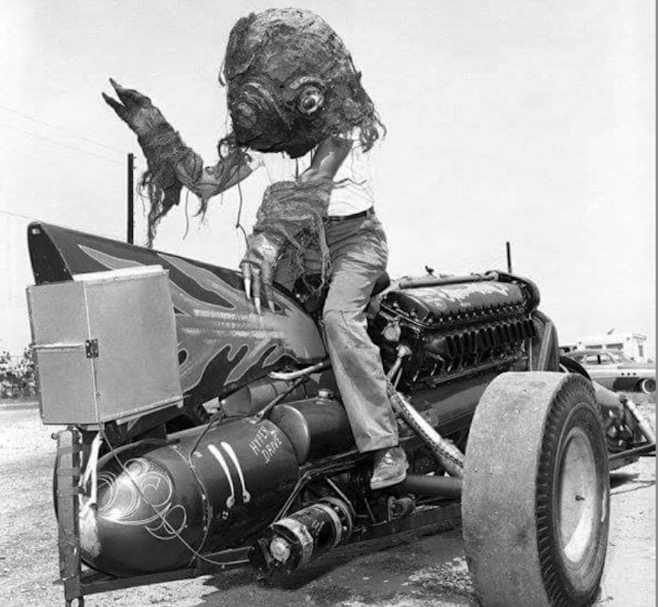 In 1959, the best and fastest of all “Green Monster” race cars presented itself at Lion’s Dragstrip. It was the first time traveling West for the Art Afrons group and they brought Green Monster #11 or for the appearance. For the Roman Number fans: XI.