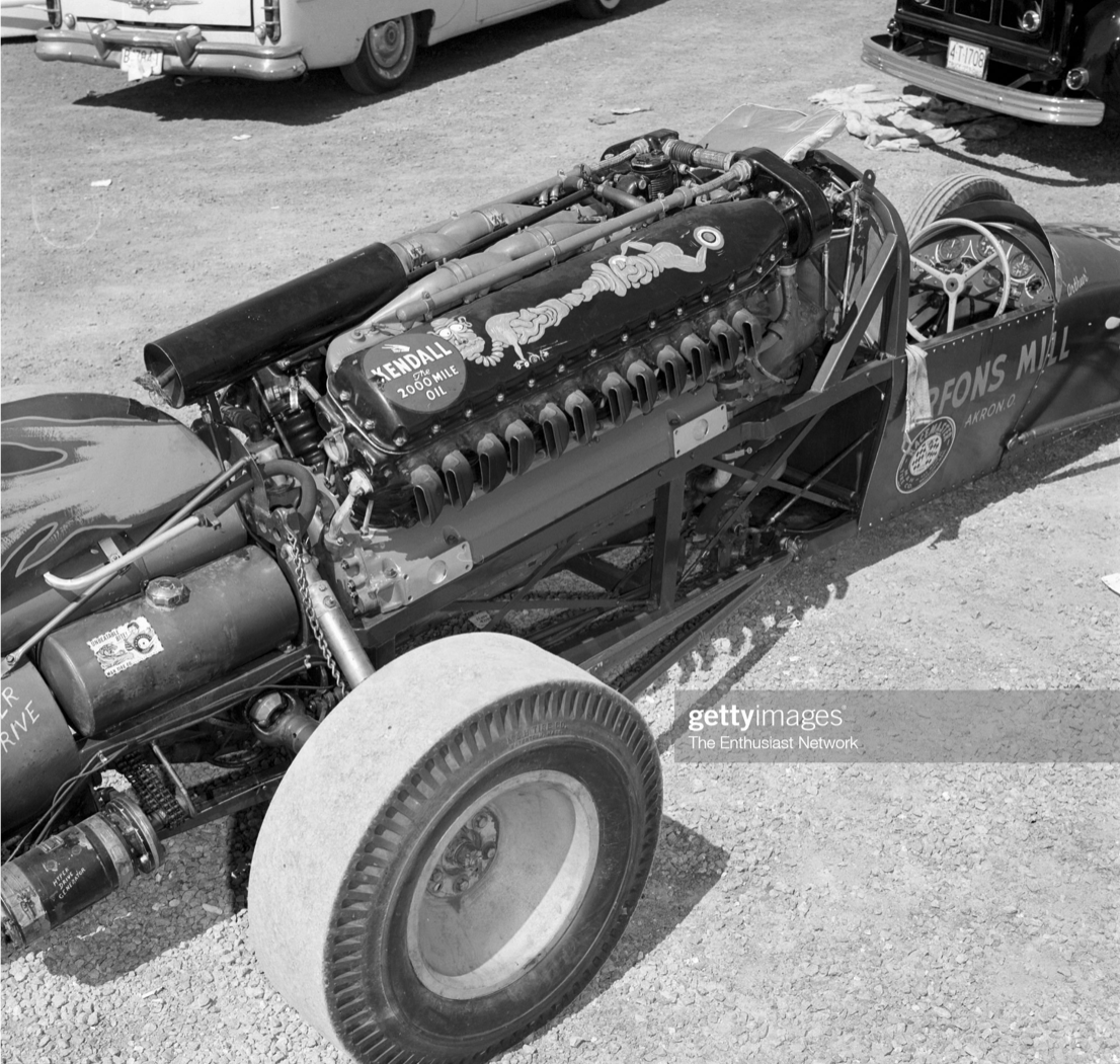 My brother and I already were weekly racers at Lion’s Dragstrip and decided to just be spectators for this unusual big-time event. It was the first of its kind. When our dad heard us talking about the “aircraft” powered race car, he, too, was interested and attended Lion’s Dragstrip just for that appearance.