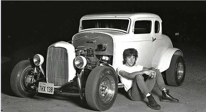 Scotty's Muffler roadster at the Indianapolis Nationals where it won Best Appearing Car. Scotty in the middle, a very young "Bily the Kid" next to him.