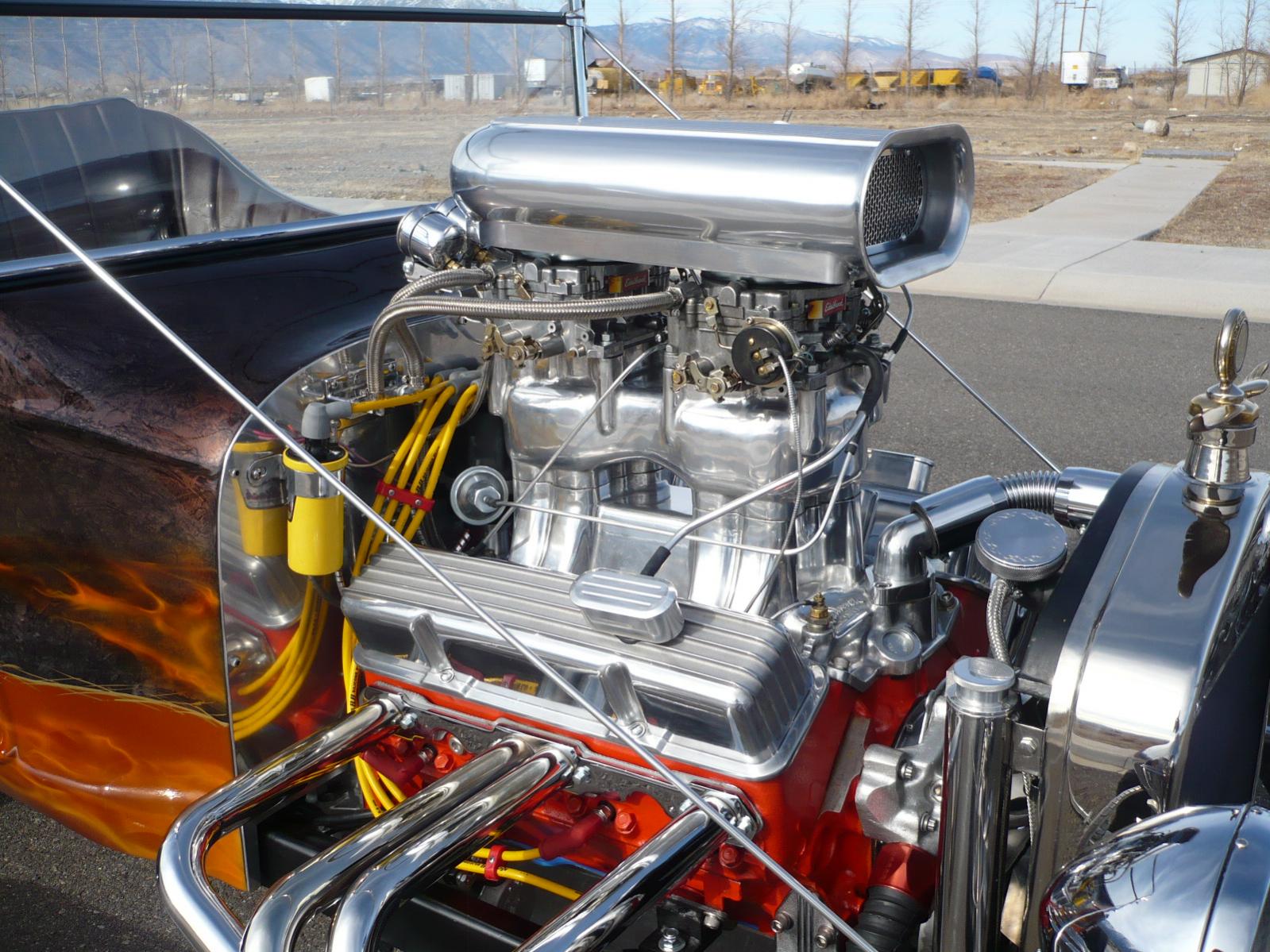 The fake induction will soon be replaced (wall hanger) with a scoop, but the hemi will stay. Were hemis very common in t buckets? Though outdated, the rest of car will mostly stay as is. if all old builds were updated to current trends cars would get pretty boring.
