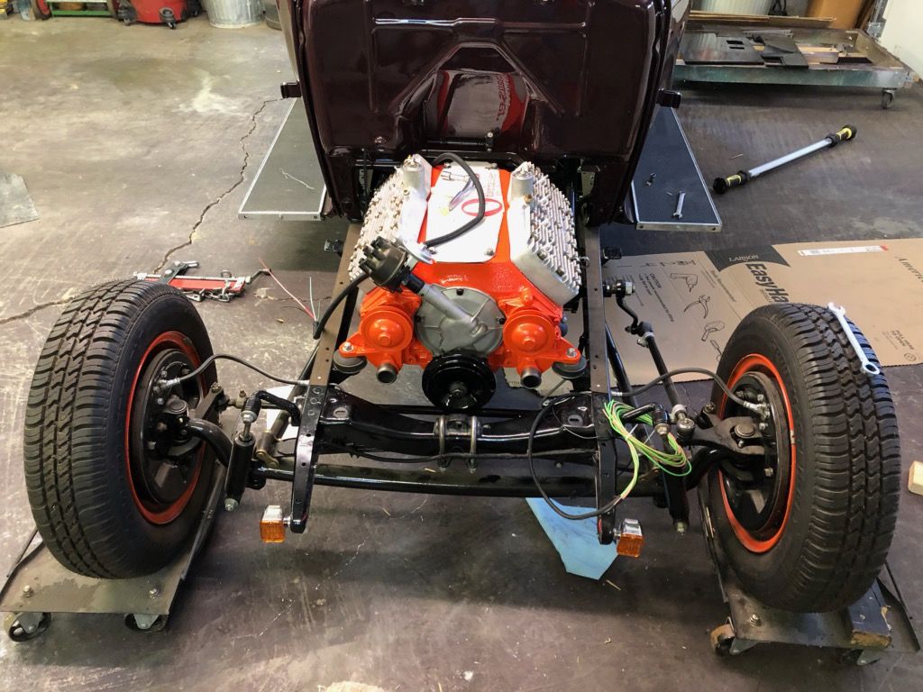 I never liked the taped up wire looms, makes it a bitch to trouble shoot. When I built my coupe I string tied it like they used to do in aircraft and then used the split mesh wire loom. The loom is hard to see but this is the best picture I could find, the distributor wiring is on the engine and the headlight wiring is by the left shock. Not traditional but looks good and fairly easy to work on.