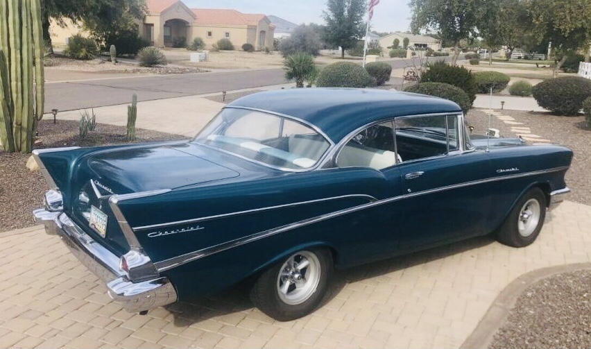 I love fresh shiny paint like the next guy but I'll always remember the original paint dusk pearl 57 210 sedan with the nicest little strips of wind worn patina on the tops of the front fenders.