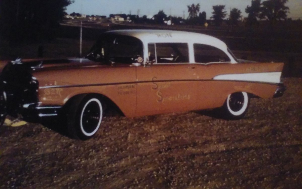 Ron Sickingers 57 Chevy drag car 1964, he raced with a group of guys from Manitowoc WI and called themselves (Speed Specialists) on the door .