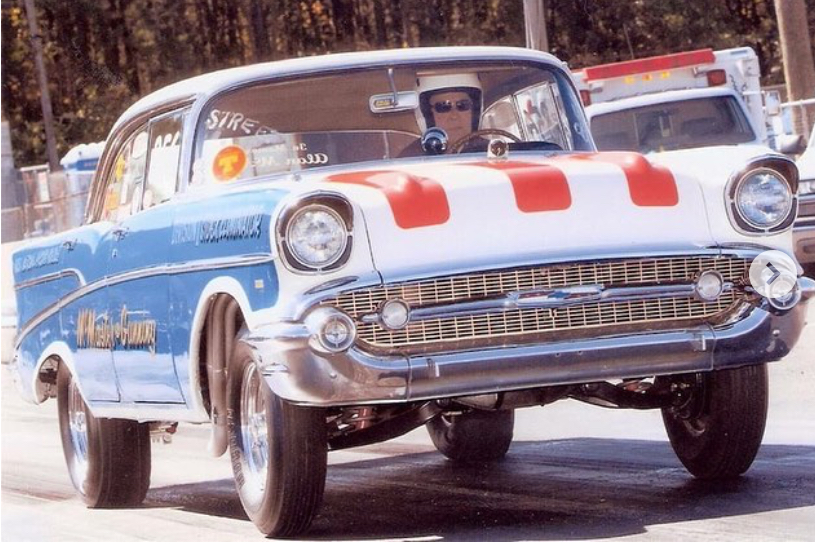 A different Tri-Five gasser from the bottom side of the planet. Jeff Burnett's blown six cylinder Holden. GM built this basic body style from 1948 until 1956 so it sort of qualifies. Roo