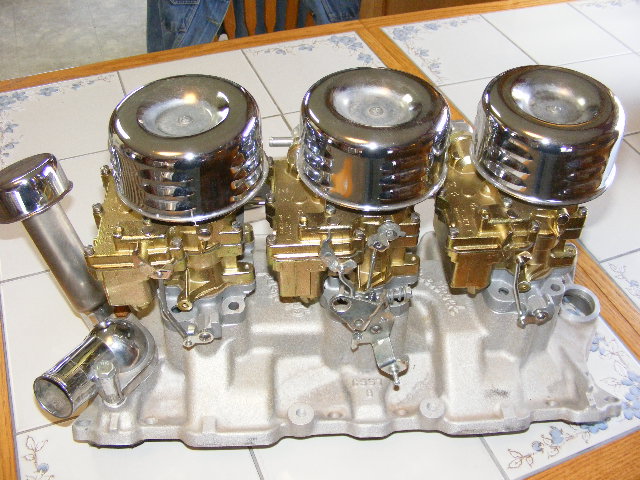 I have read the whole thread. It's your truck so do what you want. IMHO your going about it the wrong way. Your building a stroker for power and a tripower for looks. To get the best bang for your buck on your stroker you need a purposely Set up 4 barrel. Nothing wrong with a tripower. I'm running one myself. But you will not get the performance of a 4 barrel. If you've already built the motor put a 4 Barrel on it and keep the hood shut. If not. Pick up a 350 and build a tripower for that.
