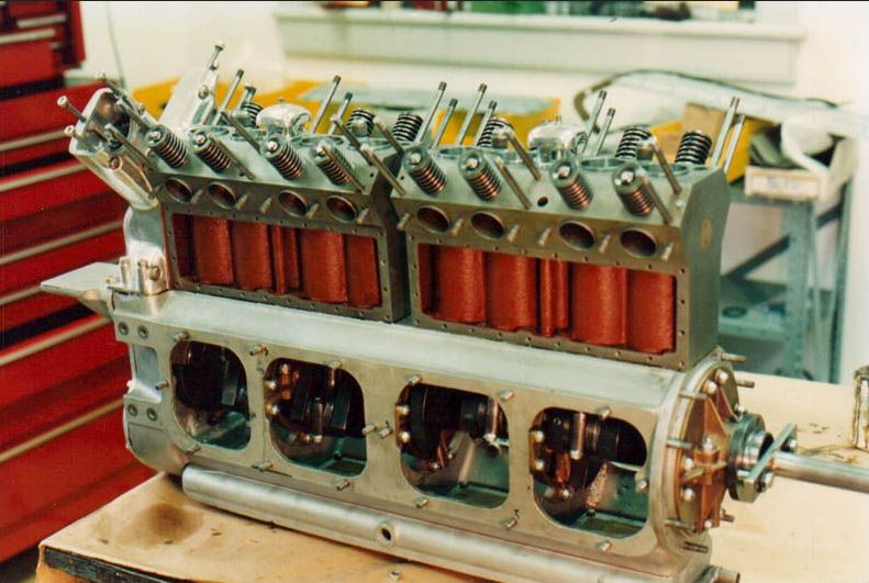 One version of the engine featured camshafts driven off the front of the engine, another design had the cams driven by gears off the back of the engine.