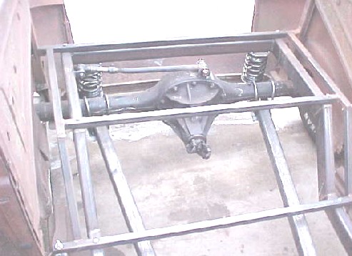 Hello, If I am 'reading' the pic right the spring appears to be resting on the 2x2 tubing that extends past the rearend. Is this the case? Also is the 2x2 attached to the rearend with u-bolts through a plate? It appears to be such a straight forward solution .. so I figure I must be missing something Any comments would be great. Thanks. Later, papa al