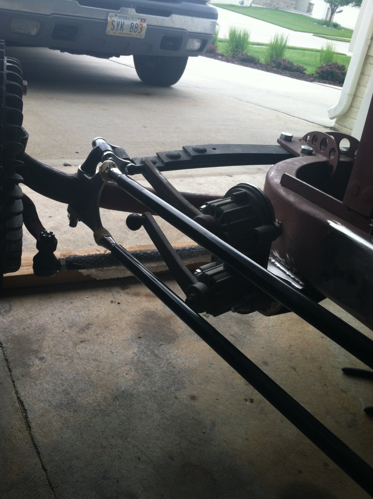 Very nice work! Offten one side of spring{rightside was mounted with out a shackel/called a deadprech{ this was so a panhard type bar was not needed] ,also at the center of spring there were wedages put in for adjustmint=cocked spring more lbs to right. The photo exsample showen of a rear end post#30/has locator bars mounted to frame wrong{ should not be flat on frame end of bar,but up n down like axle end of bar if that type of set up is used.