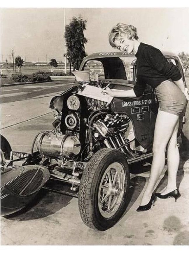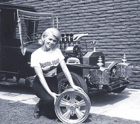 The so-called Second Marilyn is holding a Rader mag made by the Wheel Corporation of America, a 1960’s business started by Dick Rader and Mickey Thompson. Rader’s are two piece, aluminum spokes riveted to a chromed steel rim.