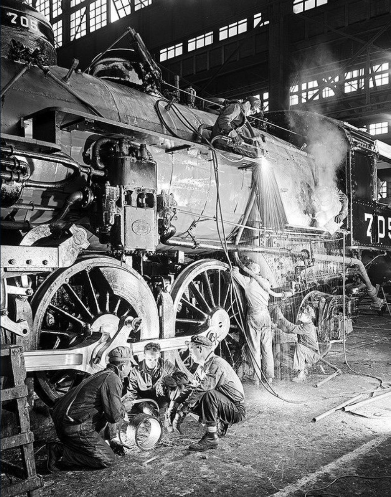 [Work Crew Repairing Locomotive 705, Texas & Pacific Railway Company] Photo by SMU Central University Libraries on flickr · · · Title: [Work Crew Repairing Locomotive 705, Texas & Pacific Railway Company] Creator: Richie, Robert Yarnall, 1908-1984 Date: ca. 1946 For more information and to view the image in high resolution, see: digitalcollections.smu.edu/cdm/ref/collection/ryr/id/2766/ View the Robert Yarnall Richie Photograph Collection