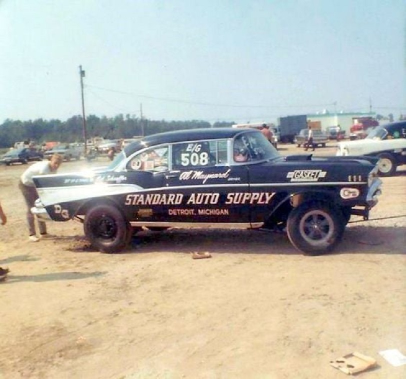 Thanks for that great picture of Standard Auto Supply's 57. That car was quite legendary around where I grew up. Here's a picture of it at my cousin's drag strip in Windsor Ontario.
