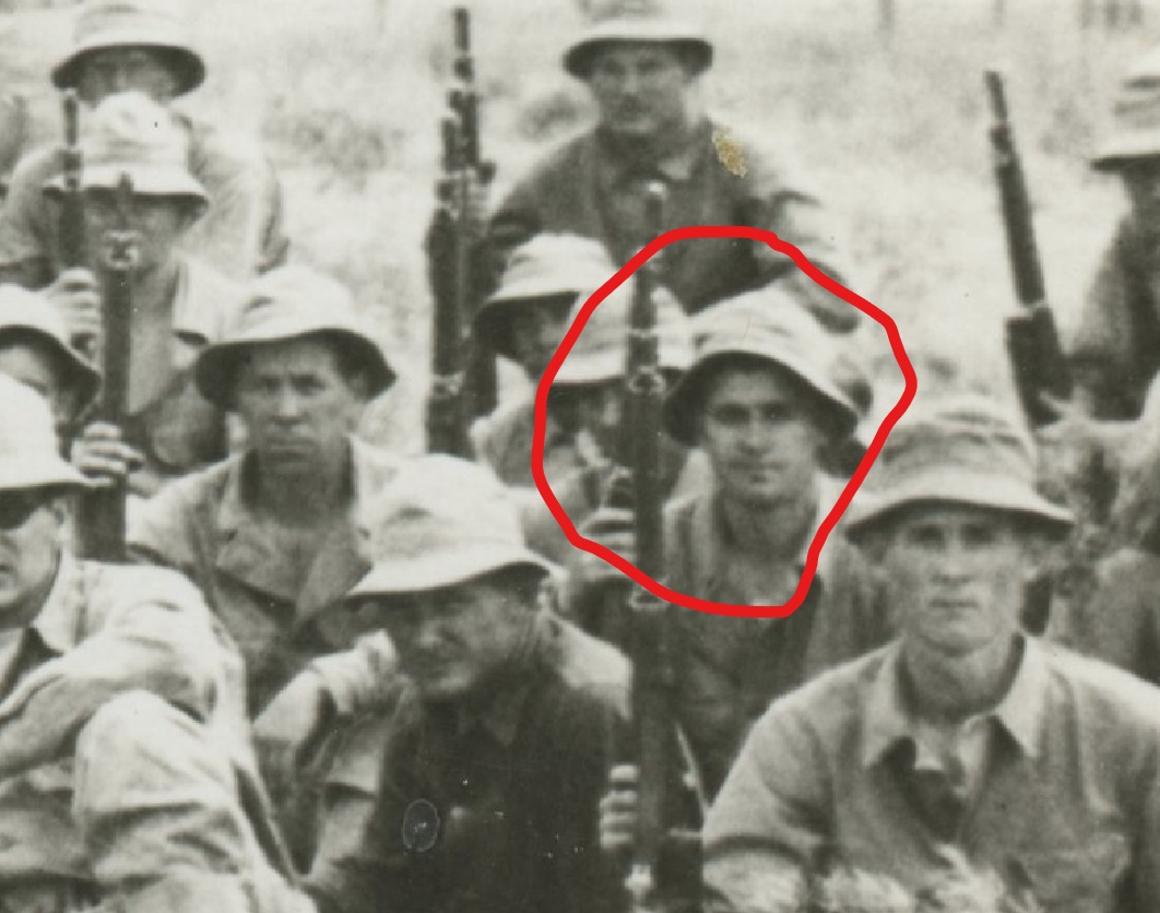 Our Dads Brother Uncle Joe a Paratrooper Chaplin visiting our Moms Brother Uncle Ralph a Medic with 7th Artillery when they were both serving in Korea. At 93 Uncle Ralph is still with us. I proudly served as his escort for a Veterans Honor Flight trip to Washington a few years ago.