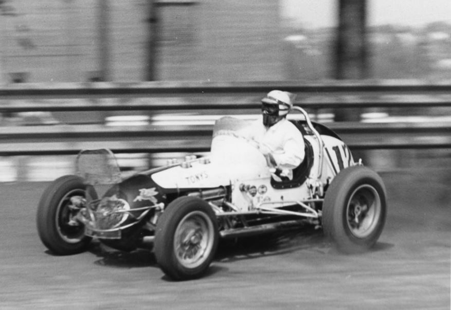 1957 Drivers and crew await start of the Sprint Car races at Gardena Speedway. 1957 Sprint Car races at Gardena Speedway. Pikes Peak Man From U.N.C.L.E. Car AMT Piranha production car
