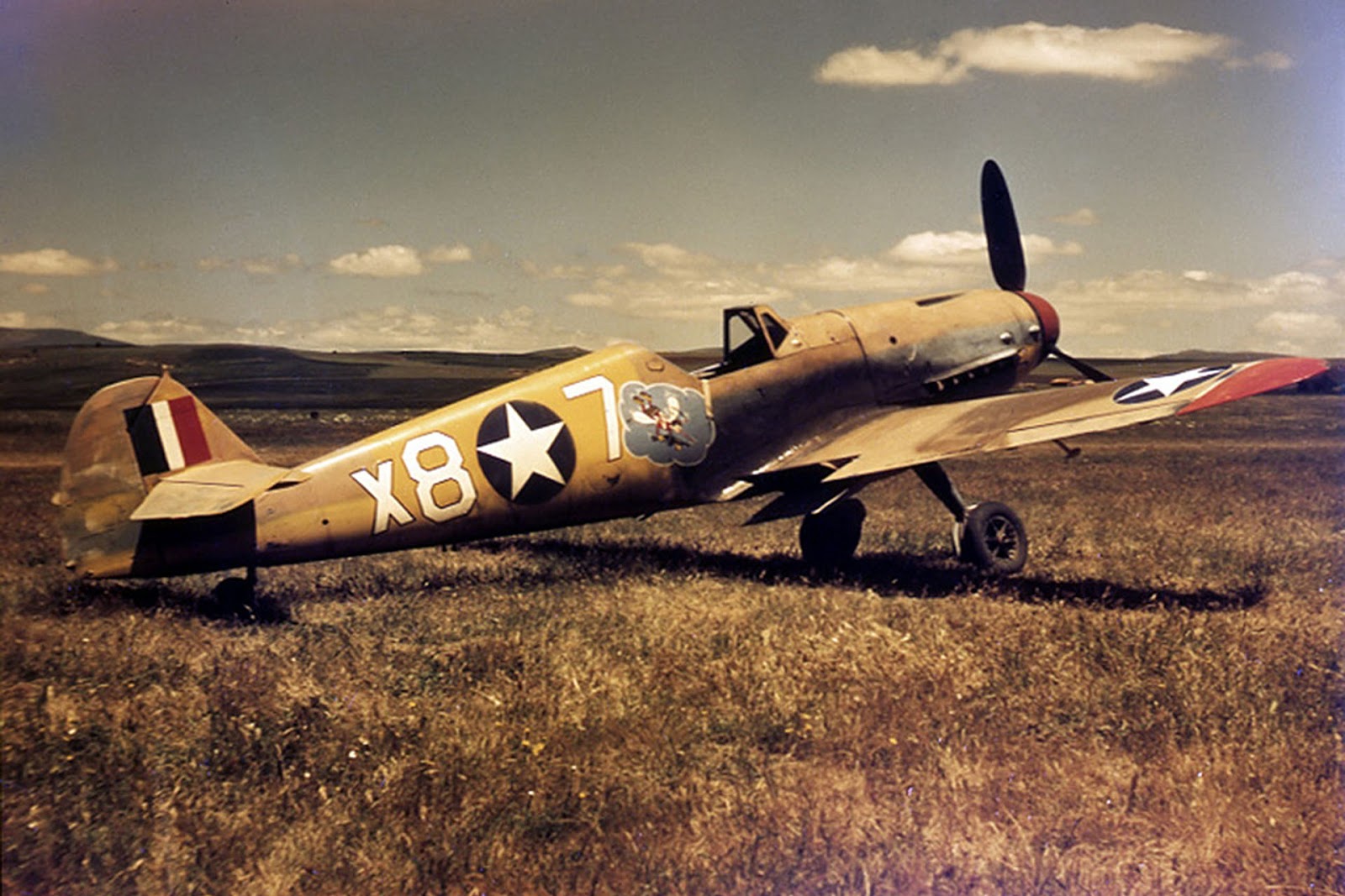 Messerschmitt Bf 109, Black 14 (recon aircraft), captured after being shot down near Zarzis in Tunisia by British ground fire in March 1943. Shipped to Wright Field, Ohio, for evaluation and testing.