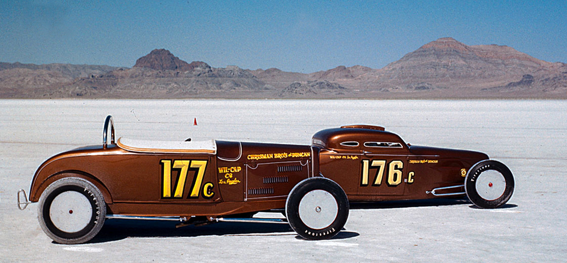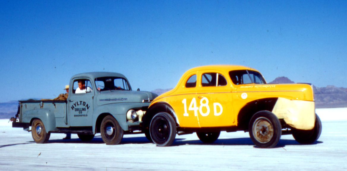 Don Palmer went to Bonneville in ’53, ’54, and ’55, and used Kodachome to save the fantastic colors of these hot rods, streamliners, and bellytankers all three trucks were coincidentally similar