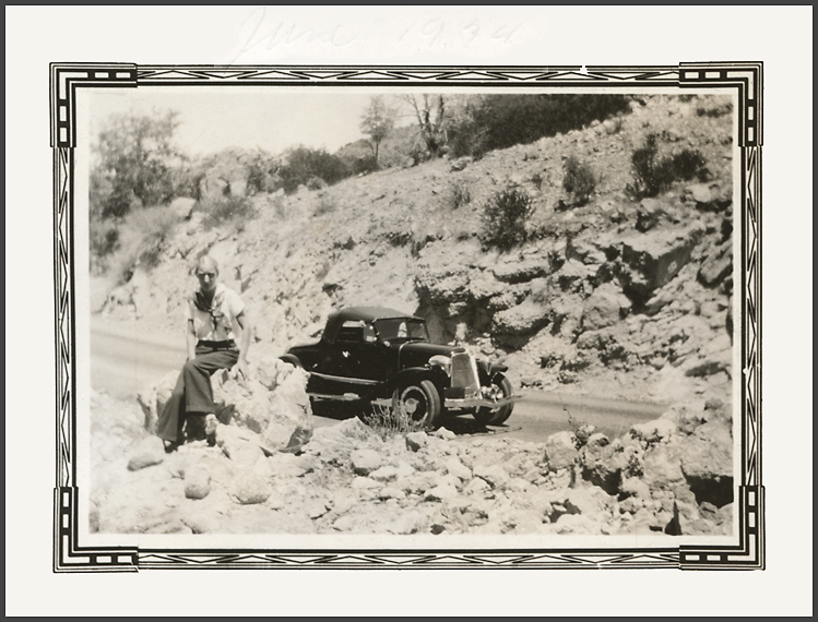 Backyard Special Mystery roadster w/ early 30s Chrysler grille modified to match Woodlites, somewhere in California. Photos were found more than ten years apart.