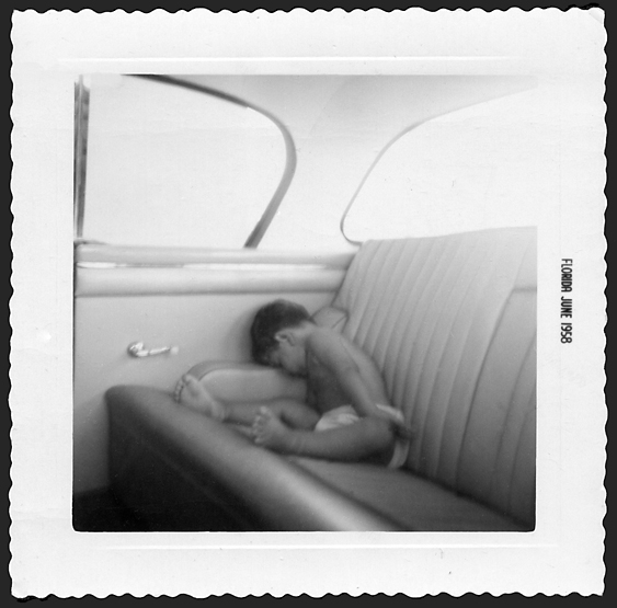 Veteran motor enthusiast and doting father in early '50s Penn-Yan runabout w/ Mercury outboard. Maybe Shafer Lake, maybe Ohio River.