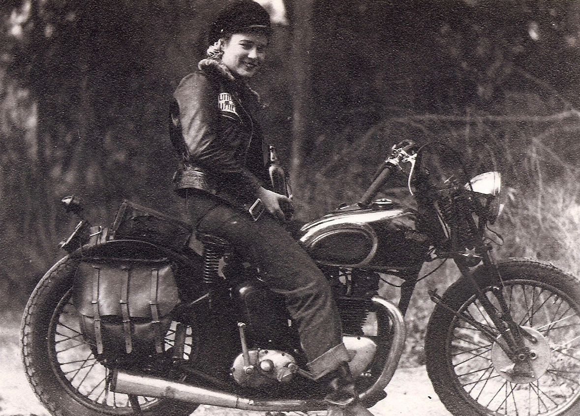 The lady in the third picture, riding the Norton, is Beatrice ('Tilly') Shilling, an engineer who worked in aviation in the UK before and during WW2. She designed the carburettor modification for the Rolls Royce Merlin engine that prevented engine cutout in negative G situations (Did you ever wonder why they roll over on their back before diving in all those old war movies?). She got an OBE for that! The modified part was irreverently referred to as 'Tilly's orifice'. After the war she went car racing and passed away in 1990 aged 81.