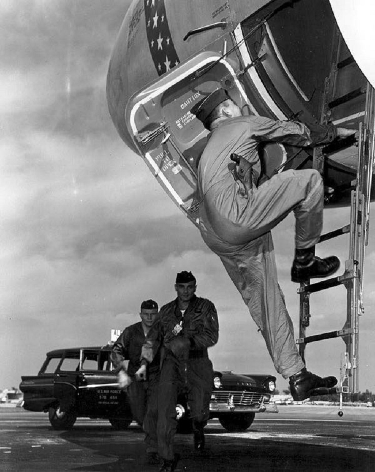 Looks like a "Hot Pad" scramble to get the crews to the planes and off the ground ASAP. note the cars doors are still open, they jump out and run to the plane and the driver closes the door just to shave some minuscule amount of time.