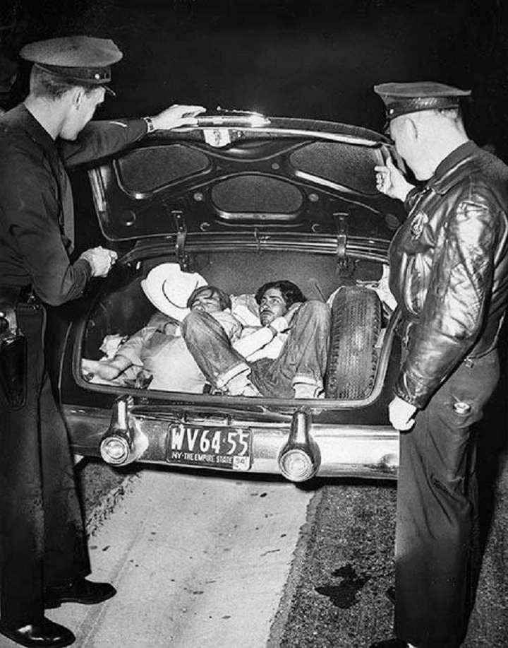 Milwaukee June 64, Jim Hurtubise ran into AJ Foyt and hit the wall. He had a extra fuel tank in the nose of the car and it caught on fire and he was badly burned. The trailer is what they called a Dolly Wheel trailer.
