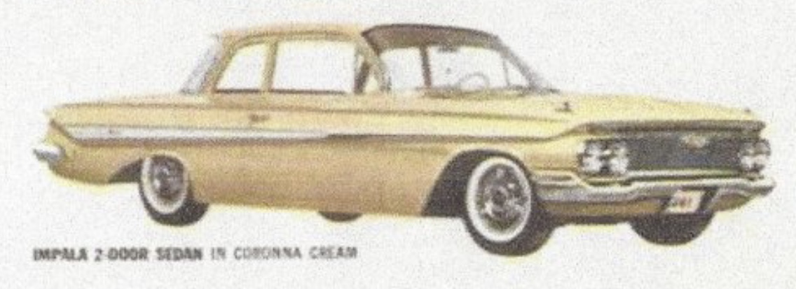 Never saw one. I’ll need check out the brochures. Yep… Impala 2dr Sedan. I’m thinking we saw Biscaynes and a few Bel Airs but not Impalas..