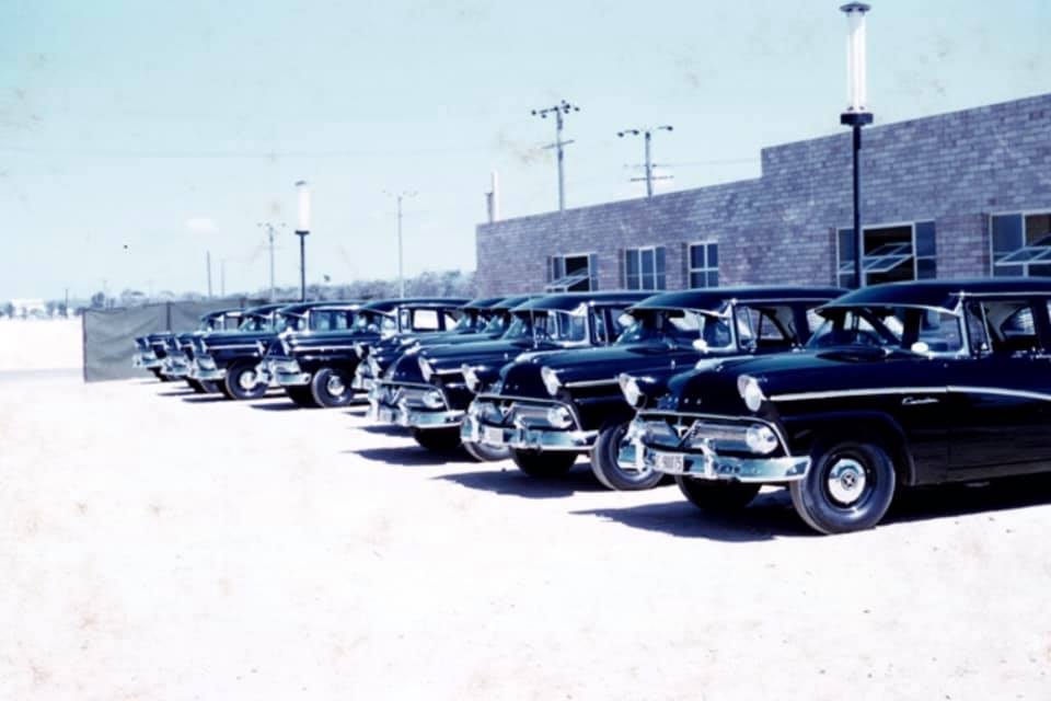 its a photo shop. the buildings are way too new of a style. the shadow is hokey. his left arm reflection isn't bent to the angle of the fin. plus it leave service until 1992. that pic is the museum berth