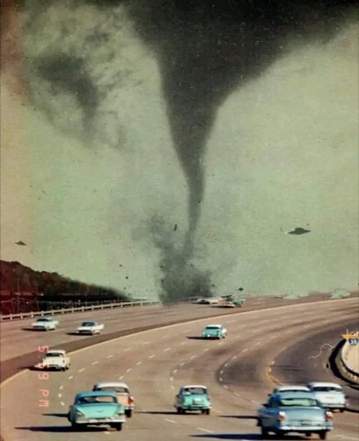 This one needs some explaining! Did the tornado suck the ufos down or did the ufos create the tornado