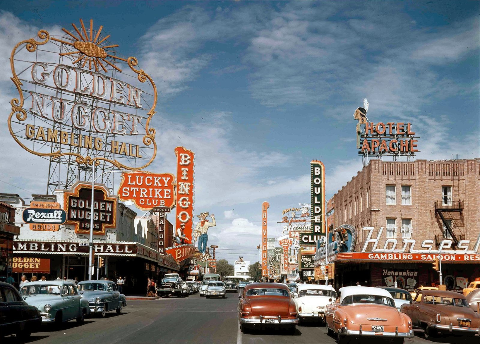 Looks like that '54 Merc in front of the Golden Nugget is up on a platform. A "Win This Car" promotion??
