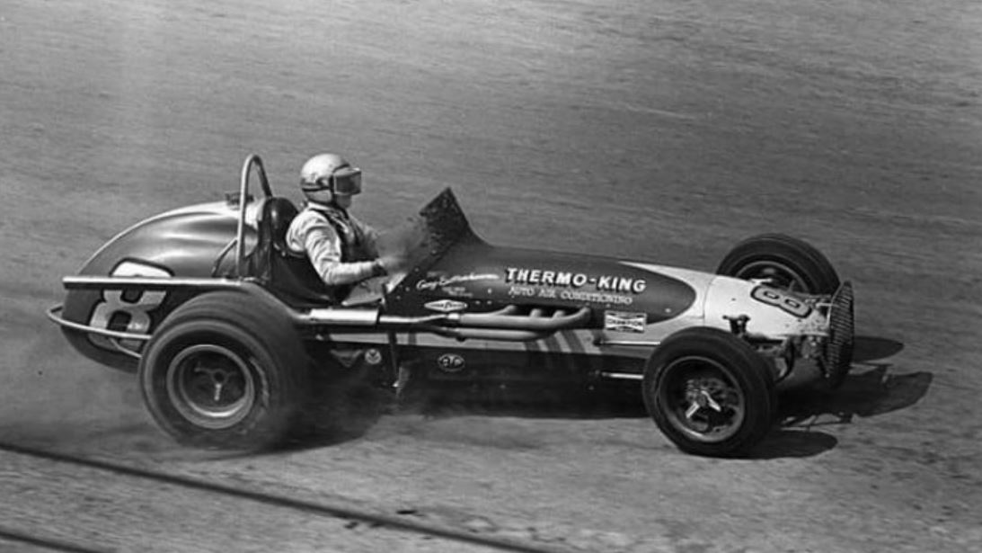 Looks like Gary Bettenhausen checking out either the front of his race car or the trailer in around 1968. And that's something different different sticking outside of the right side of the car. Could that be an early attempt at running a turbo Offy in a Champ dirt car? Thanks, Rootie!