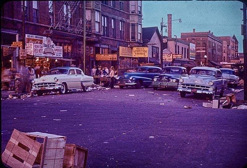 That's Maxwell St. in Chicago and this particular four block long stretch was known as Jewtown. That was not meant to be anti-Semitic, it was just an area where Jewish vendors displayed their wares on the weekend with ramshackle stands on the street or sidewalk. There were stores too but the weekend outdoor market was open to anyone with the proper Chicago license. Soup to nuts, it was there, everything from clothing, housewares, tools, it was like an early flea market. It operated year round and one of the best things to come out of the area was the Chicago Blues sound. Black bluesmen that came up from the South played on street corners there for tips and eventually they began to use amps to be heard better giving way to artists such as Muddy Waters, Howlin' Wolf, Willie Dixon, Buddy Guy and many more. It was relocated in 1994 when the University of Illinois expanded their Chicago campus and lost a lot of its rough and tumble atmosphere. I’ve often regretted not taking my sons there when they were in their early teens to see the blues in their real authenticity, raw and unpolished.