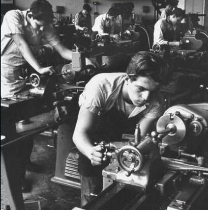 Lookin like Southbend Lathes . Was before PPE was required . New eyes could be had cheaply , I guess .