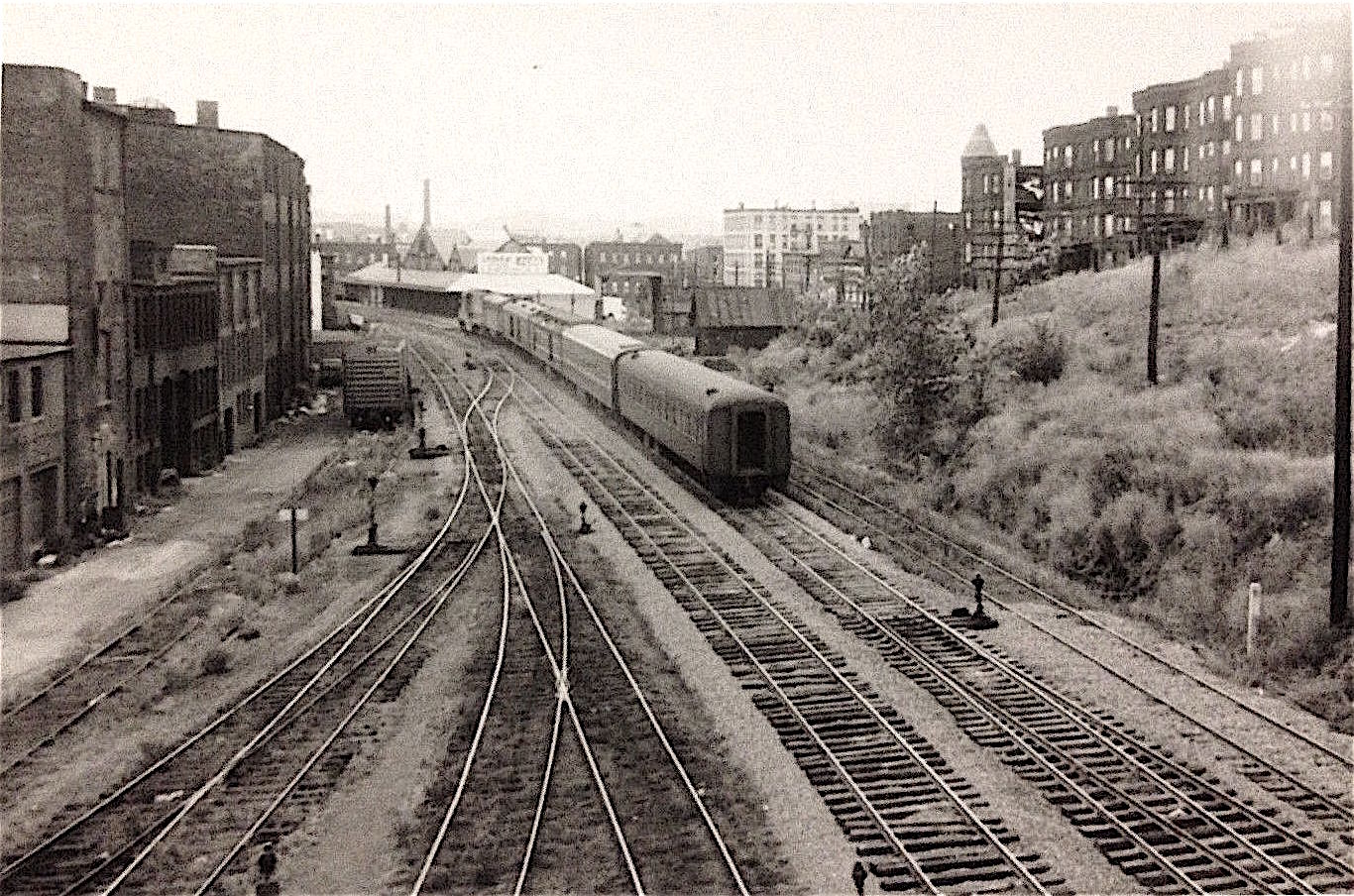 I walked over these tracks many times on the pedestrian covered walkway from the flats to get to Main Street. As a small child it could be creepy it always smelled like pee in there. Great picture of the train & station. Thans.
