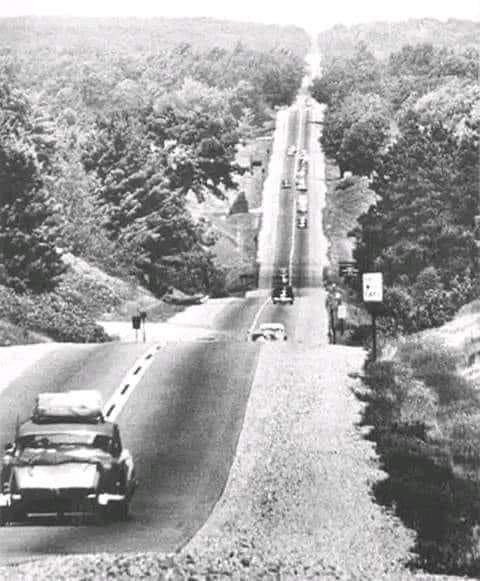 Looks like a road in southeast Missouri. A straight rollercoaster.