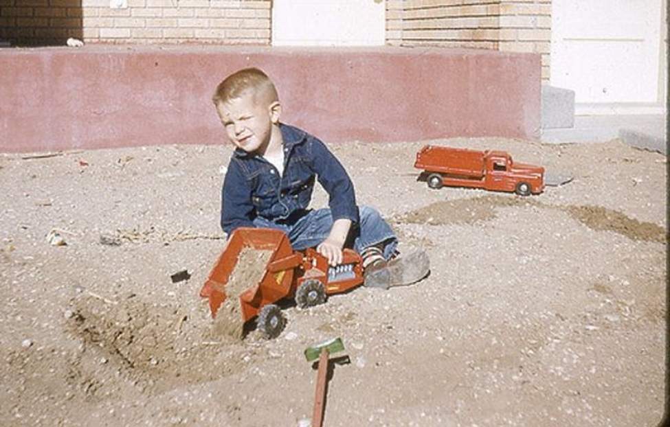 Hello, It was a fun time in our fairly old, (Built in 1963) but new to us, house. I had just painted the whole house on a Memorial Day weekend and the yard looked empty. So, I built this nice sand box for our son to enjoy the backyard and his toys. He showed signs of allergies. So, after the clear redwood planks were treated with polyurethane, the added sand was purified/sanitized white sand purchased at the local hardware store. It was long before Lowes or Home Depot. It was called “Nail Apron.” We knew of several cats roaming the neighborhood, so I made a clip on cover to keep the wandering cats away from the purified white sand. It took a little extra time, but it was worth it to cover the whole custom sandbox after usage. When it was hot and a weekend holiday or two, my wife used to go outside in the same sandbox, move the toys over to the side and lay down her beach towel for an afternoon nap or two. It was her alternate beach, when we could not go to our favorite beach due to the weekend crowds. If our son also wanted to go outside with “mommy,” we had an umbrella for him. Now, the “green thingy” was his custom pool for those cooling off days. I could move it into the sandbox and he could slide right into the water and then hang around or get out in the clean white sand for his digging activities. Jnaki The yard was finished and our son now had his own section of the yard. I built in a sliding glass door in the wall of the house and if my wife was not outside, she could see him playing in the custom sandbox from anywhere inside. Some days, he would ride his low style “big wheel” around the yard and make a stop at his own private beach and pool… Later on, he would use his custom scooter for the same routes…YRMV