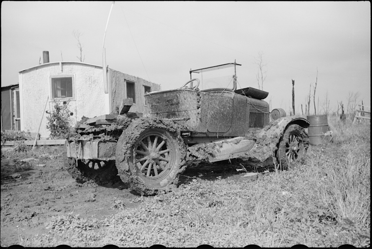 Uncle Bud’s got a Ford ain’t got no fenders. It slings mud like a train throws cinders. -Red River Blues