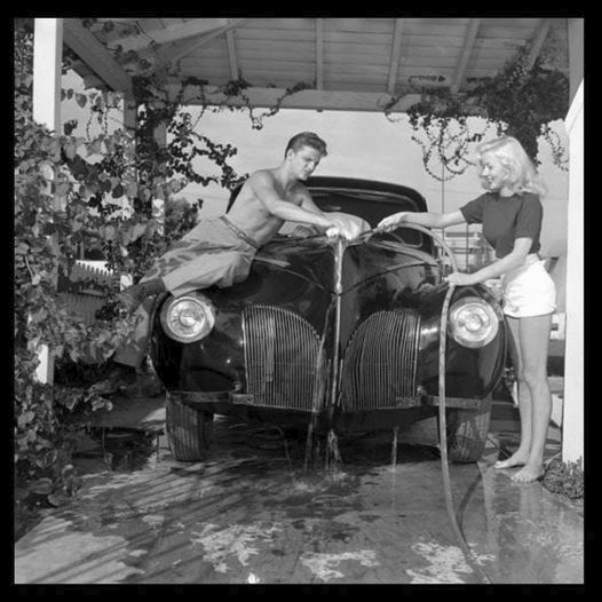 Hello, The one fun, exciting thing we learned by accident was when we were in our dad’s car going down a main street in Long Beach or Los Angeles, the red car trains also ran on the same streets. Overhead were miles of electrical lines and at intersections, curved, crossed and connected to the next street or thoroughfare. But, at night, or in a light rain, one could see the sparks when the roller connections hit a cross road connection, way high up over the red cars. (and us, below) The photo shows the maintenance worker cleaning the crisscross connections, to keep the muck that gathers there and perhaps not making the best connection for the electricity for the red car trains. Jnaki We never saw those guys during the day, but after the rush hour time period when the amount of cars was a lot lower and there was time to spray whatever it was to clean the connections. If one is near the spraying , the wind usually floated the solution onto surrounding cars and whatever. YRMV