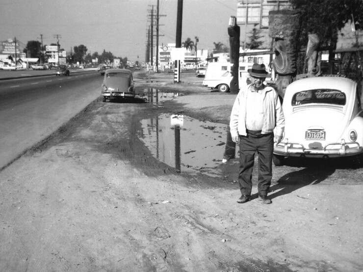 Hwy 39 or Beach Blvd. is behind the person taking the Photo. The cement block company may still be there…