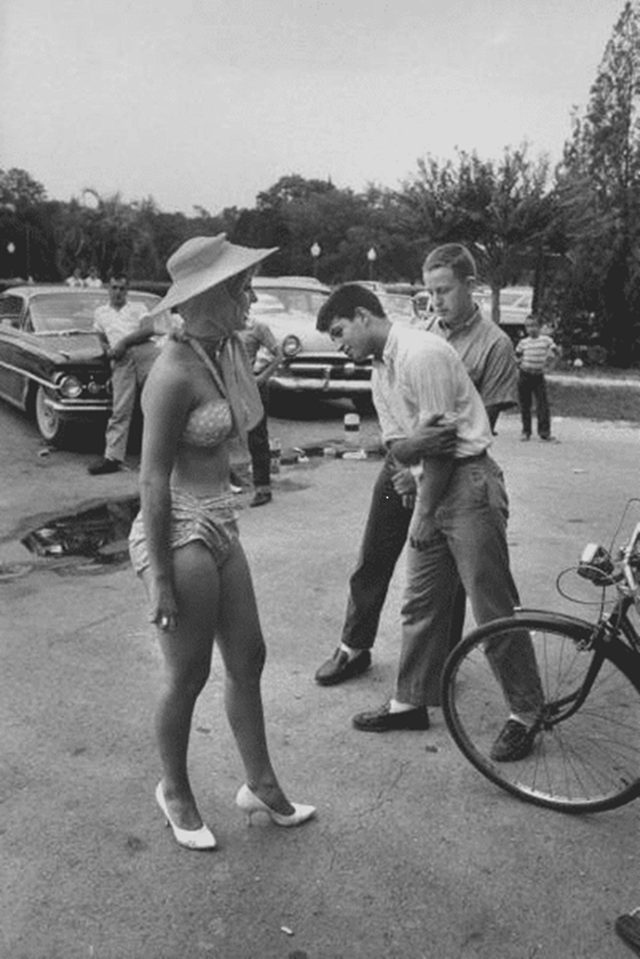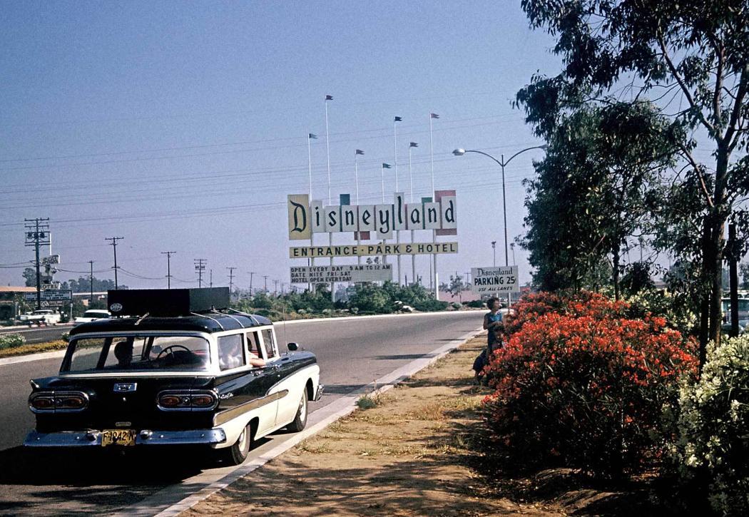 The marquee says date night Fri. and Sat. Date night at Disneyland was fun even if you didn't have a date. They sometimes had live bands playing at every "land" And girls, girls, girls.