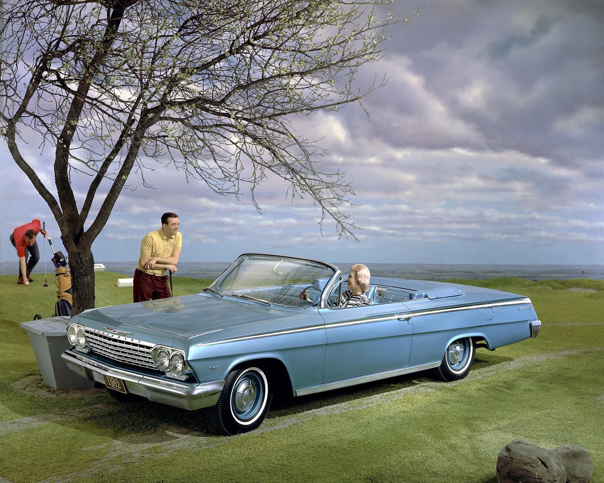 283, iron Powerglide if an automatic, bench seat, no side view mirror, basic hub caps, no radio. Shown this way in an advertisement because if it showed those better items buyers could demand they be included at no charge.