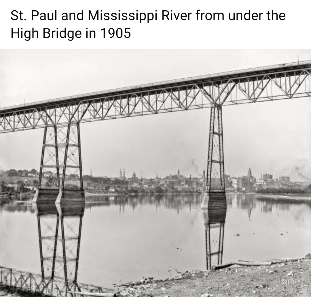 I remember walking across the old high bridge a few years before it was torn down. The walkway was just 2x6s, and as stepped on one it snapped in 2 That was an old, tired bridge!