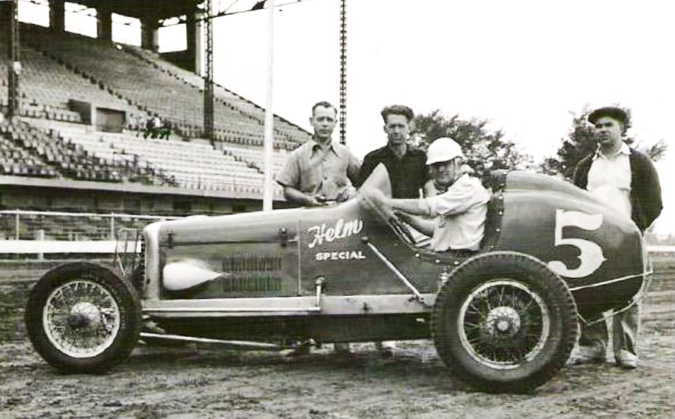 That's Harold Shaw in the Helm Hisso. Don't know what track but it's certainly a State fair track, Minn. maybe (?) The 2nd shot is of Pete Wood driving the Bill Johnson Wayne 12 port/ Silnes at P.P. 1951.