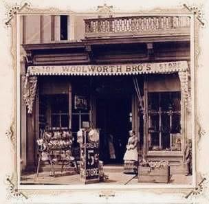 A girl in a goat cart pauses in front of the Rogers Harvey House restaurant in Arkansas, circa 1900.